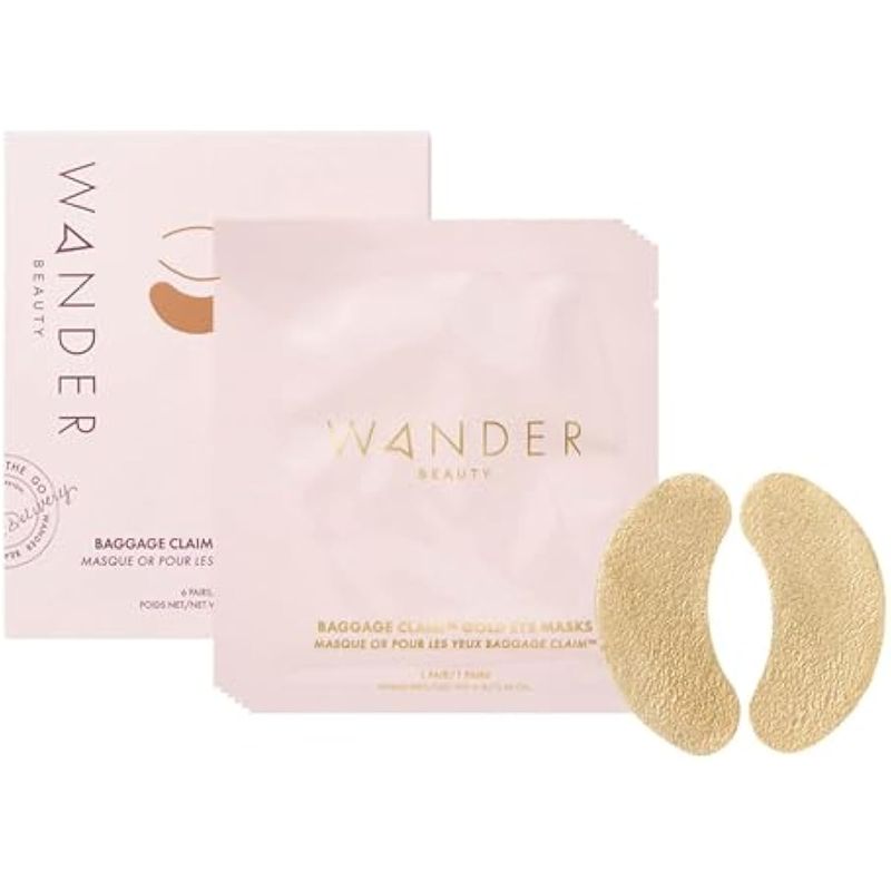 WANDER BEAUTY - PARCHES DE LáMINA DORADA BAGGAGE CLAIM PARA OJERAS E HINCHAZóN DE OJOS, MASCARILLA PARA CONTORNO DE OJOS, DESINFLAMA Y REAFIRMA, MASCARILLA ILUMINADORA PARA OJERAS (6 PARES)