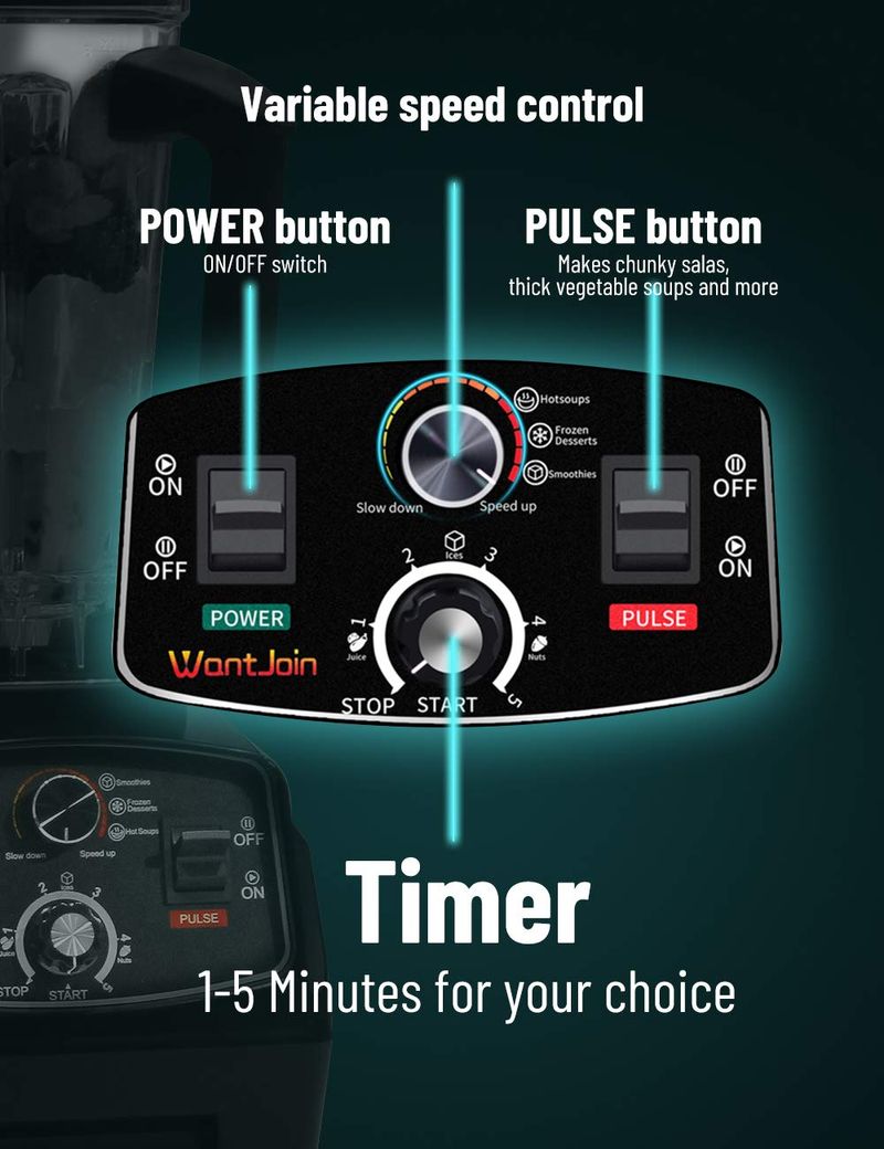 WantJoin Licuadora profesional, licuadora de encimera, licuadora para cocina, máxima 1800 W,