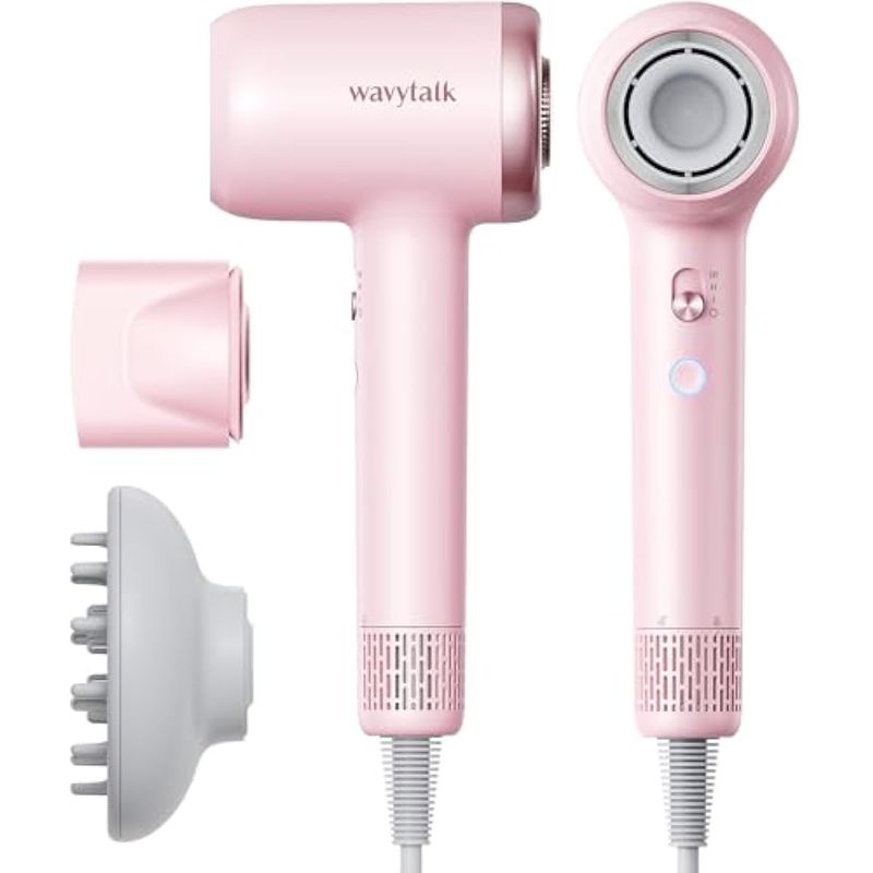 WAVYTALK - SECADOR DE PELO CON DIFUSOR, SECADO RáPIDO, 110,000 RPM CON ACCESORIOS MAGNéTICOS, SECADOR DE PELO LIGERO IóNICO PROFESIONAL CON 3 VELOCIDADES Y 3 TEMPERATURAS, COLOR ROSA