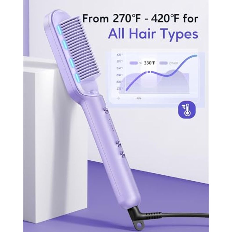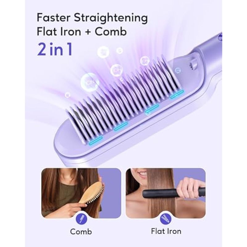 Plancha y peines 2 en 1: Como este cepillo alisador de pelo integra perfectamente la funcionalidad del peine y la plancha plana en un solo dispositivo. Esta innovadora herramienta crea sin esfuerzo un peinado de aspecto recto natural, mejorando la comodidad y eficacia