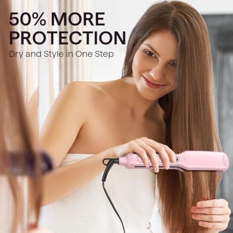 Acorta el tiempo de peinado del cabello: nuestra plancha plana extra ancha alisa el cabello más rápido y más fácilmente. Si tienes el cabello largo y grueso, puedes tratar más cabello en una sola pasada, ahorrando tiempo mientras creas estilos. Es perfecto para cabello largo, grueso o rizado