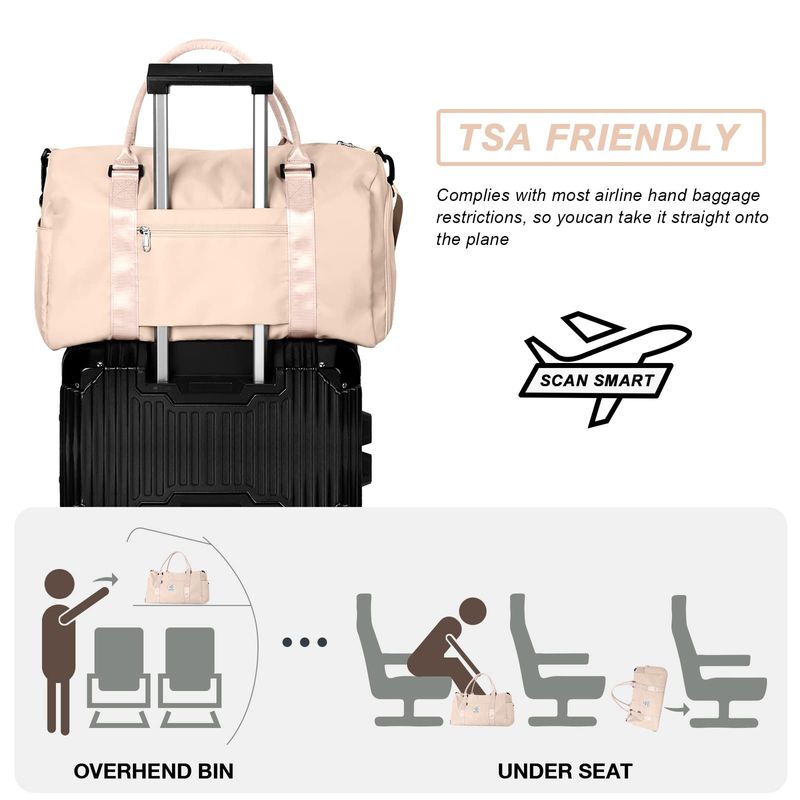 ??Dimensiones perfectas y apto para avión?: bolsa grande alto x ancho x alto 10.63 x 21.65 x 7.09 pulgadas, peso de 1.3 lbs1.3 libras. Solo para referencia, consulta la medida real. La bolsa de mano perfecta para viajes en avión. La funda integrada de la carretilla se desliza sobre el asa del equipaje rodante, ahorra mano de obra y es fácil de mover. Cabe en el compartimento superior, así como en el asiento inferior como artículos personales en vuelo.