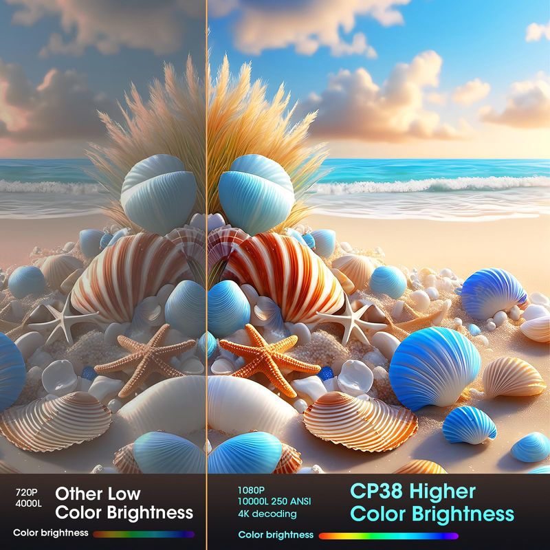 Experiencia de visualización extraordinaria: disfruta de una impresionante claridad de imagen y colores vivos con 250 lúmenes ANSI de brillo y una impresionante relación de contraste dinámico de 15000:1 que supera todas las expectativas. Ya sea para películas, juegos o presentaciones, nuestro mini proyector proporciona una experiencia multimedia excepcional.