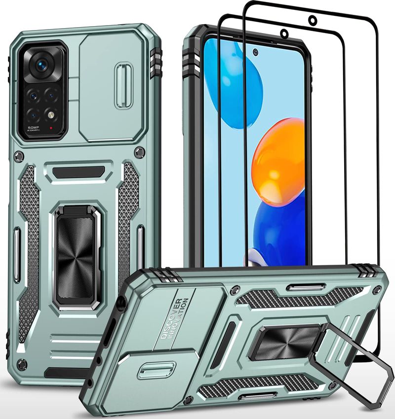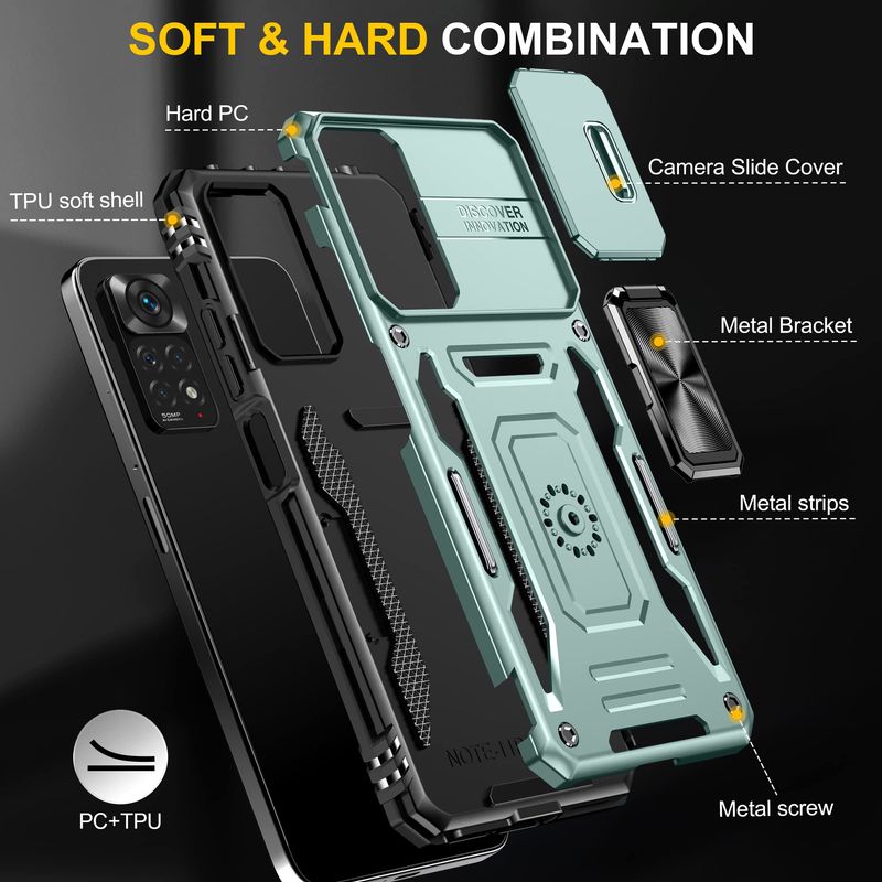 Wefor XiaoMi RedMi Note 11 (4G) - Funda con cubierta para cámara deslizante, soporte de anillo