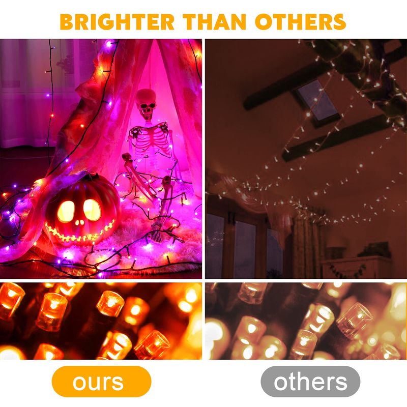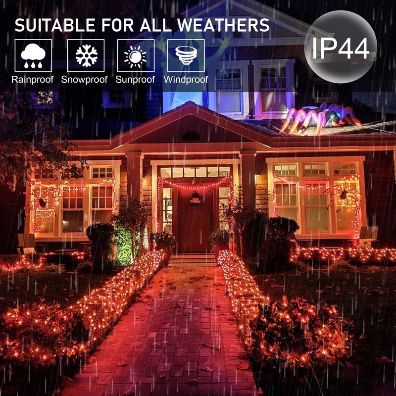 Decoración navideña de 500 LED: tira de luces multicolor de bajo voltaje de 29 V, cadena de luces extremas de 164 pies para exteriores que te permiten un gran espacio de decoración. Estas luces LED de Halloween pueden traer a las personas un ambiente festivo feliz durante los días libres.