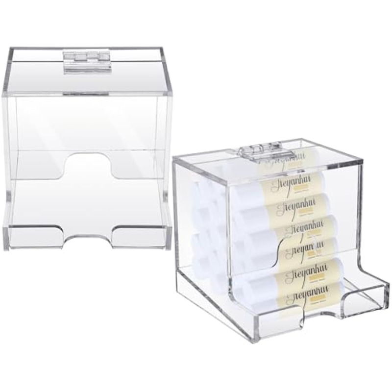 Wenqik Paquete de 2 dispensadores de bálsamo labial acrílico transparente con tapa con bisagras,