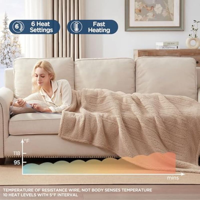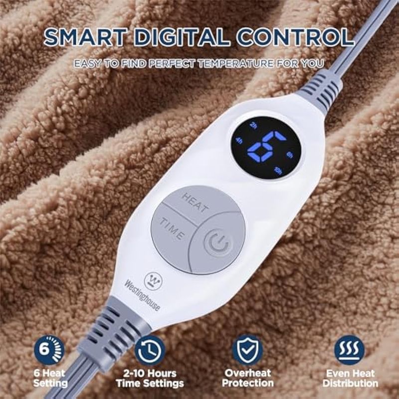 Westinghouse - Manta eléctrica. Manta térmica de felpa sherpa suave, lavable a máquina, con 6