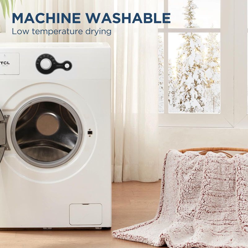 Lavable a máquina y de fácil cuidado: simplemente desenchufa el control y métela en la lavadora. Lavar la manta eléctrica en ciclo delicado con agua tibia. Secar colgada o en secadora a baja temperatura. Precaución: no lavar en seco. No usar blanqueador. No planchar. No conectes ni enciendas tu manta eléctrica mientras esté húmeda, sino hasta que esté completamente seca.