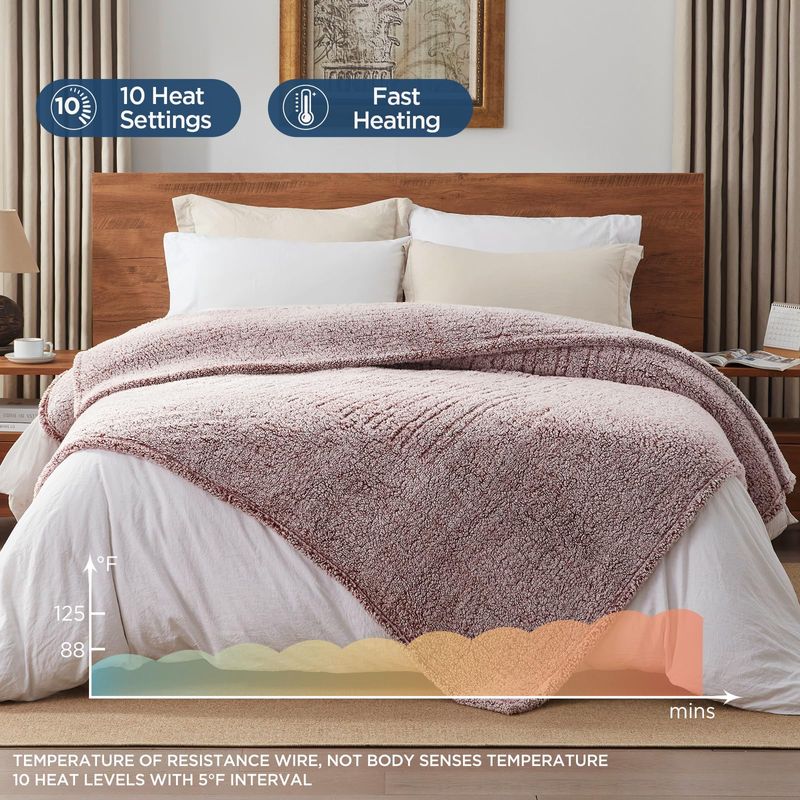 Protección contra el sobrecalentamiento para mayor comodidad y seguridad. Con una estricta certificación de seguridad ETL, esta manta térmica tiene una función de apagado automático que se activa una vez que la manta alcanza una determinada temperatura. Esto evita que el producto se sobrecaliente y protege al usuario de experimentar cualquier lesión.