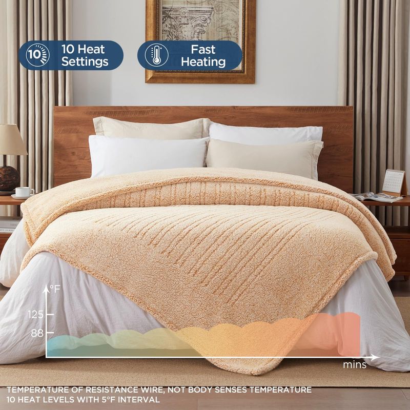 Westinghouse - Manta eléctrica. Manta térmica de felpa sherpa suave, lavable a máquina, con 6