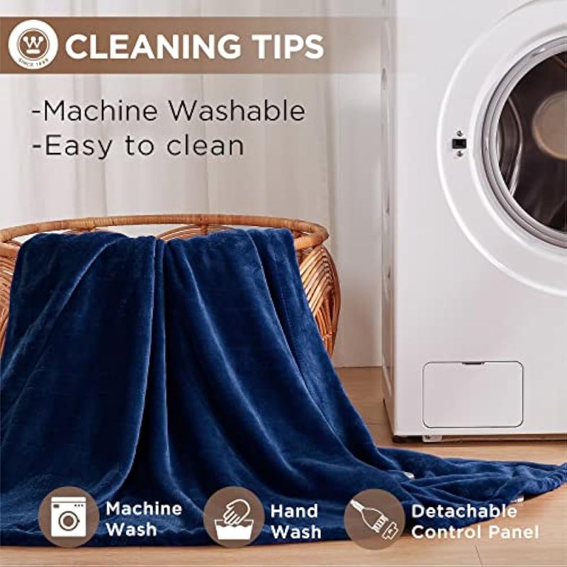Lavable a máquina y de fácil cuidado: simplemente desenchufa el controlador y mételo en la lavadora. Lava esta manta caliente en un entorno suave o delicado, utilizando agua tibia. Secar al aire o secar en secadora a baja temperatura. Precaución: No lavar en seco. No usar blanqueador. No planchar. No conecte y encienda su manta térmica mientras está húmeda hasta que esté completamente seca. No escurrir. No utilizar pines u otros medios metálicos. No utilizar si está mojado