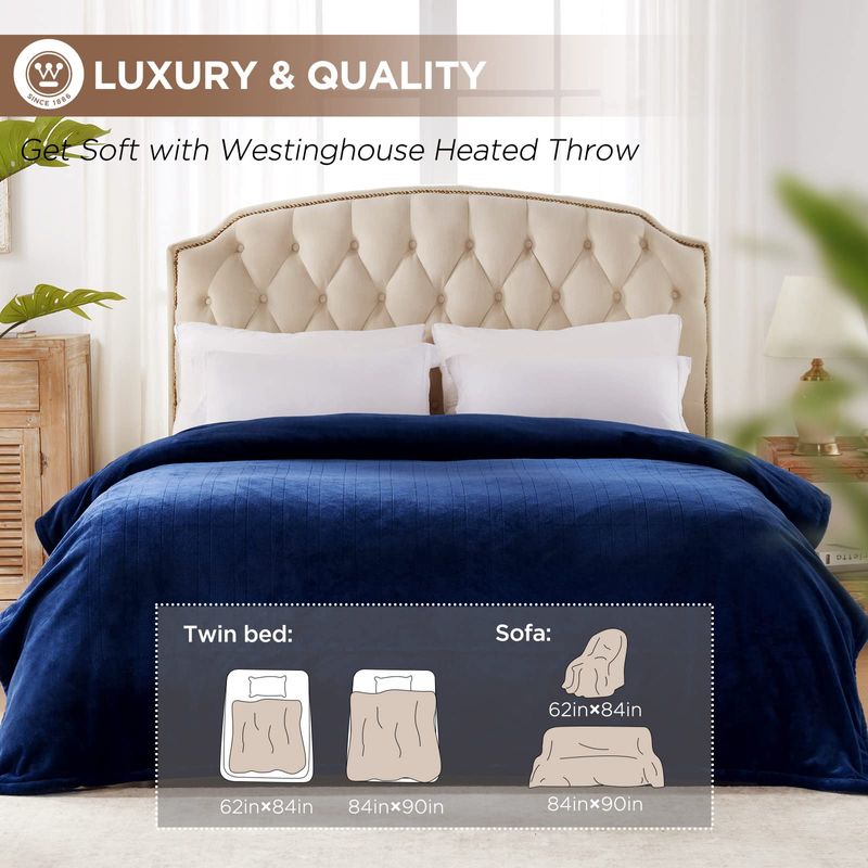 HOGARBLANQUERIAFRAZADAWestinghouse - Manta eléctrica térmica suave y sedosa, manta de franela de microfelpa de 50 x 60
