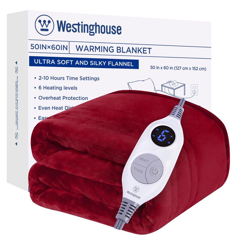 Westinghouse - Manta eléctrica térmica suave y sedosa, manta de franela de microfelpa de 50 x 60