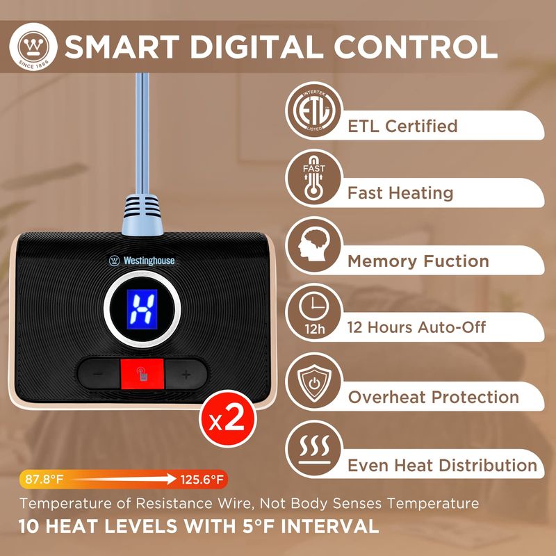 HOGARBLANQUERIAFRAZADAWestinghouse - Manta eléctrica térmica suave y sedosa, manta de franela de microfelpa de 50 x 60