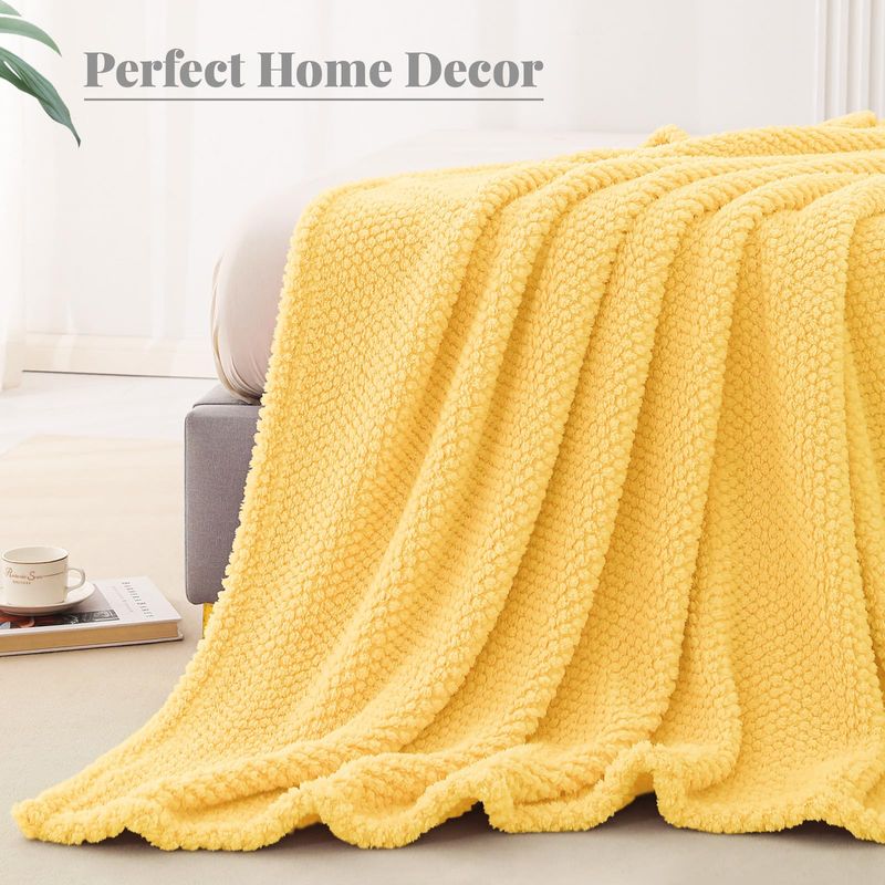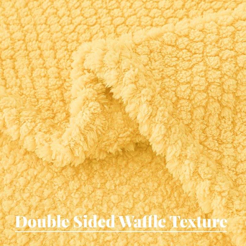 Tela mullida de alta calidad: el proceso de tejido único hace que la manta se sienta como entre franela y sherpa, es lujosa pero también suave, la tela mullida de 9.88 ozm² te traerá suficiente calidez y comodidad para todas las estaciones.