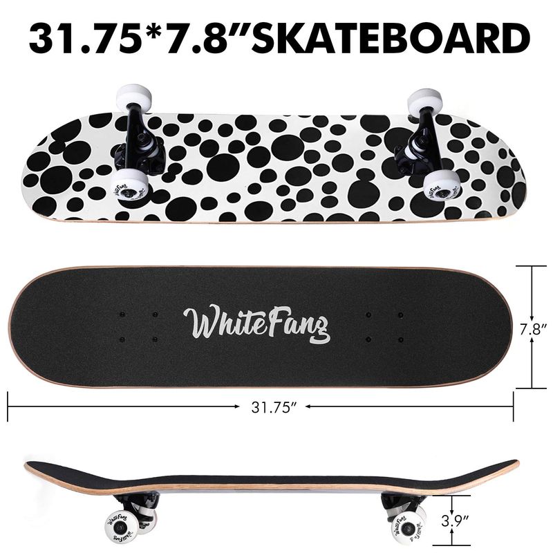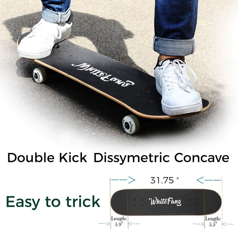 WhiteFang Skateboards for Beginners, Complete Skateboard 31 x 7.88, 7 Layer Canadian Maple Double