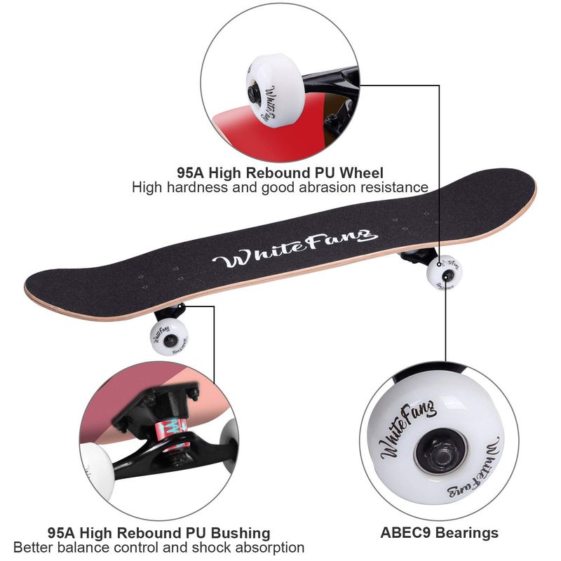 WhiteFang Skateboards for Beginners, Complete Skateboard 31 x 7.88, 7 Layer Canadian Maple Double