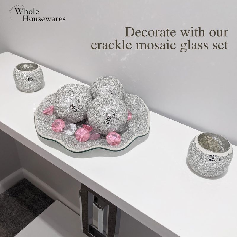 WHOLE HOUSEWARES Bandeja decorativa de mosaico de vidrio de 11.5 pulgadas, centro de mesa de