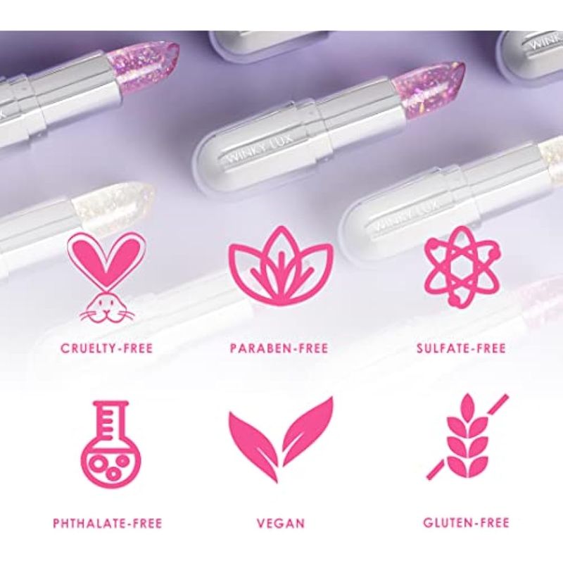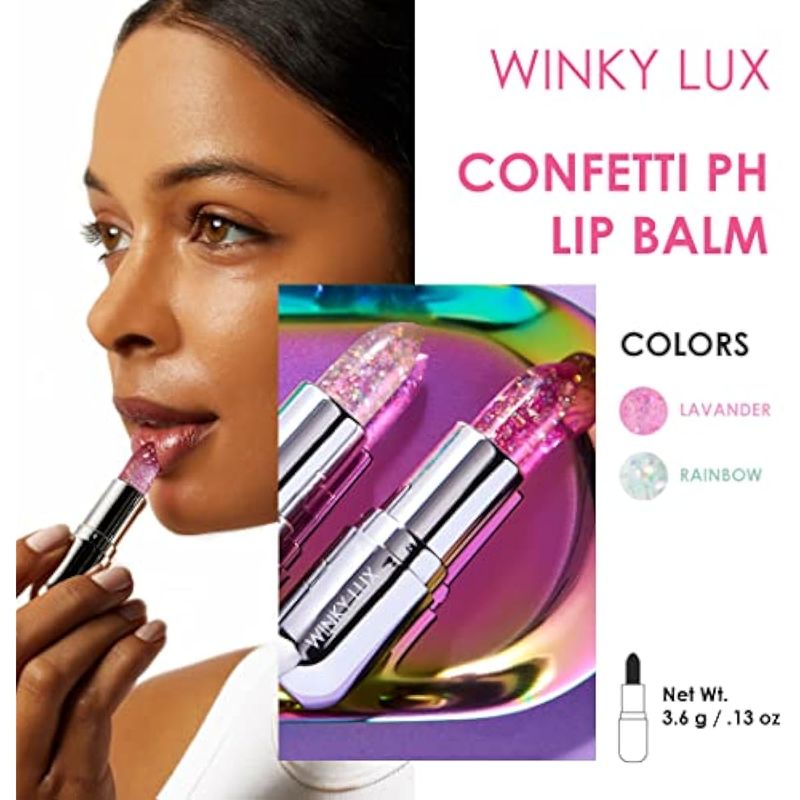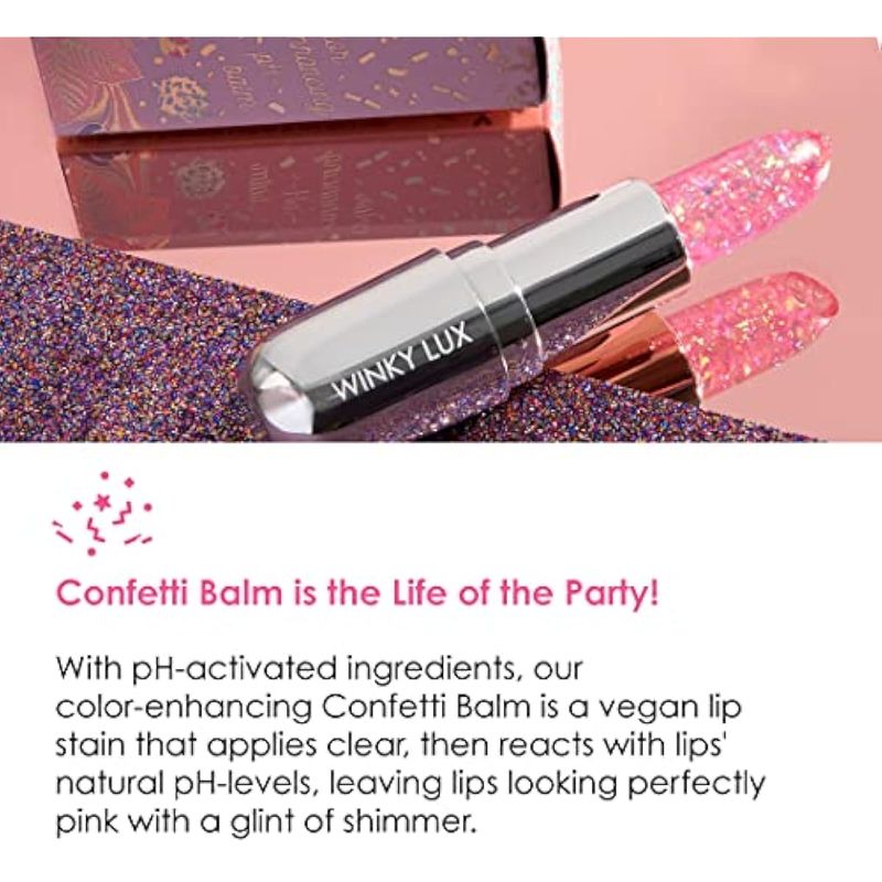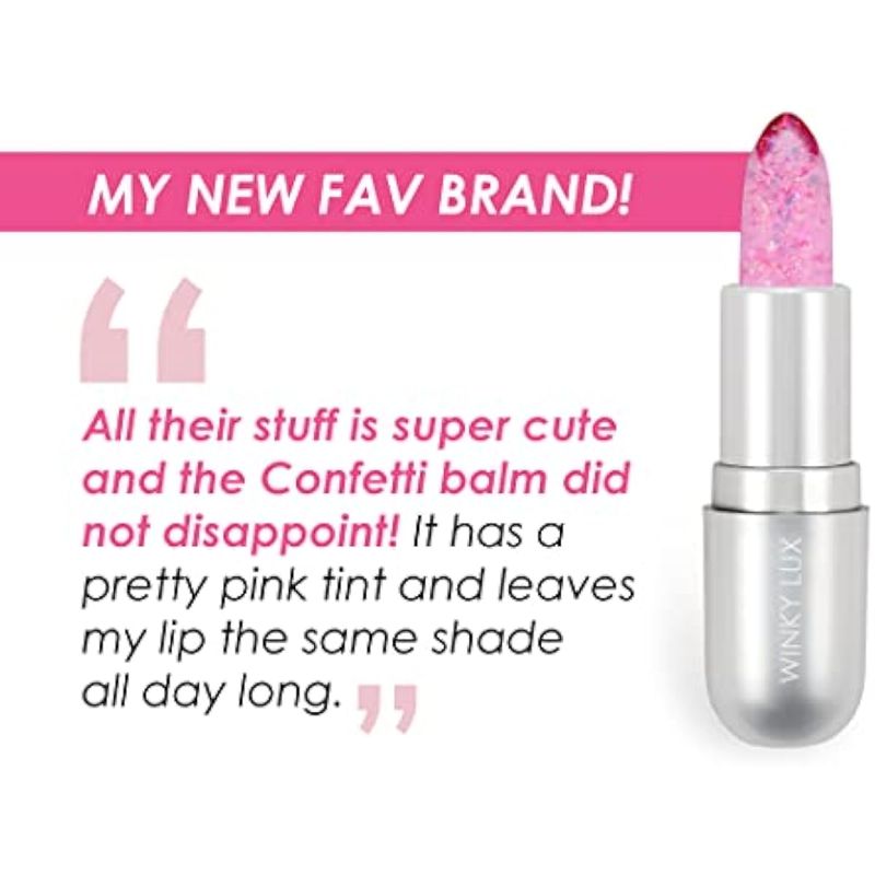 WINKY LUX BáLSAMO DE CONFETI CON PURPURINA, BáLSAMO LABIAL PH QUE CAMBIA DE COLOR Y BáLSAMO LABIAL TINTADO, BáLSAMO LABIAL VEGANO Y LIBRE DE CRUELDAD, HIDRATA Y RELLENA, LáPIZ LABIAL ROSA