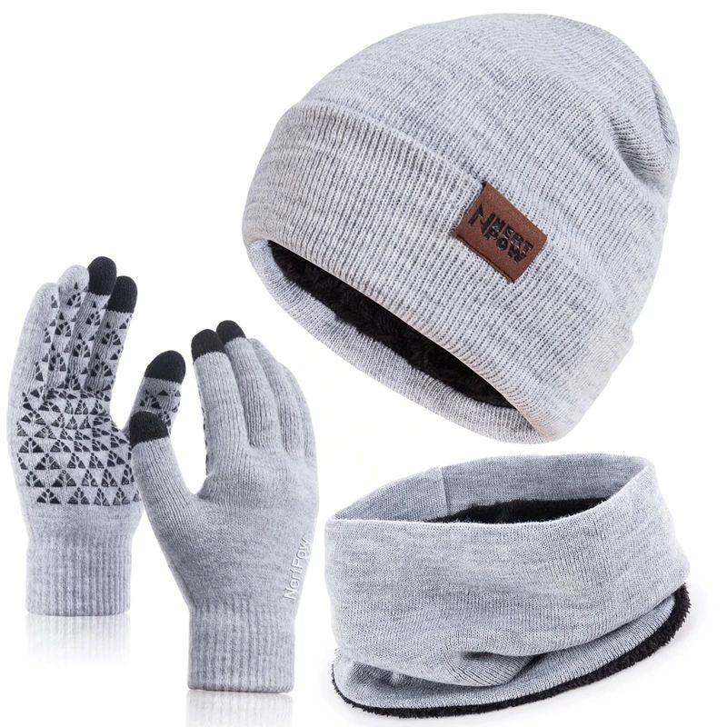 Winter 1-3 PCS Beanie Hat Gloves Scarf For Men And Women, Knit Fleece Lined Warm Touchscreen Gloves