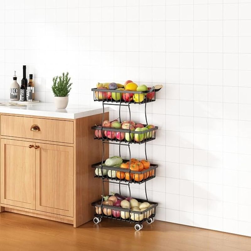 HOGARAMOBLAMIENTOMUEBLES DE COCINAWisdom Star Cesta de 5 niveles para frutas y verduras, cesta organizadora de alambre con ruedas,