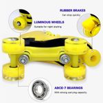 Configuración de cuatro ruedas: Equipados con una configuración de cuatro ruedas, nuestros patines proporcionan estabilidad y equilibrio, asegurando que pueda patinar durante períodos más largos con una fatiga mínima.