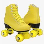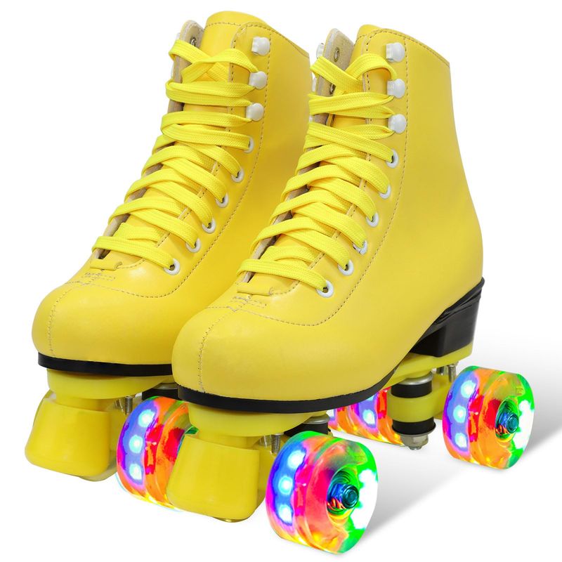 Wiwiy Patines para mujeres y hombres, con parte superior alta de cuero, cuatro ruedas brillantes,