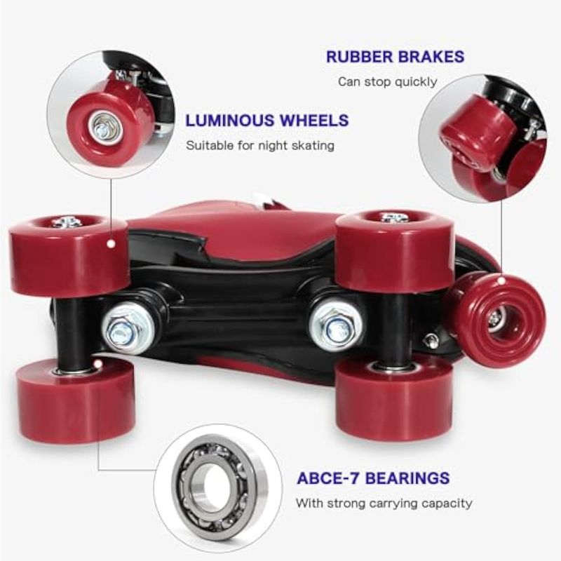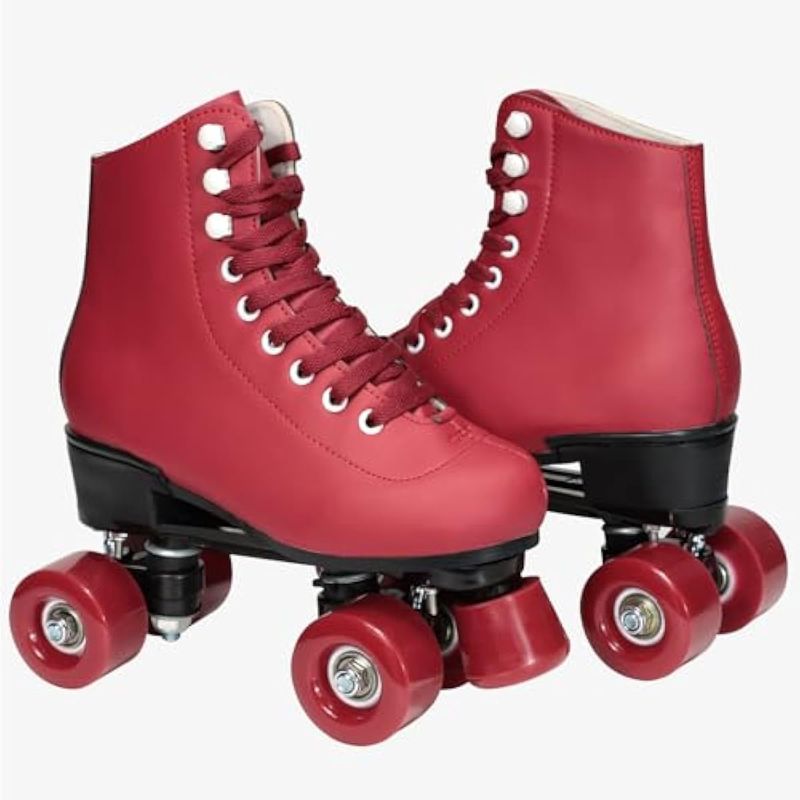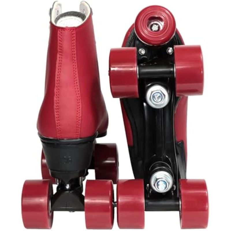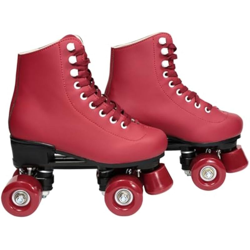 WIWIY PATINES PARA MUJERES Y HOMBRES, CON PARTE SUPERIOR ALTA DE CUERO, CUATRO RUEDAS BRILLANTES, COLOR ROJO VINO, PARA PRINCIPIANTES, INTERIORES Y EXTERIORES