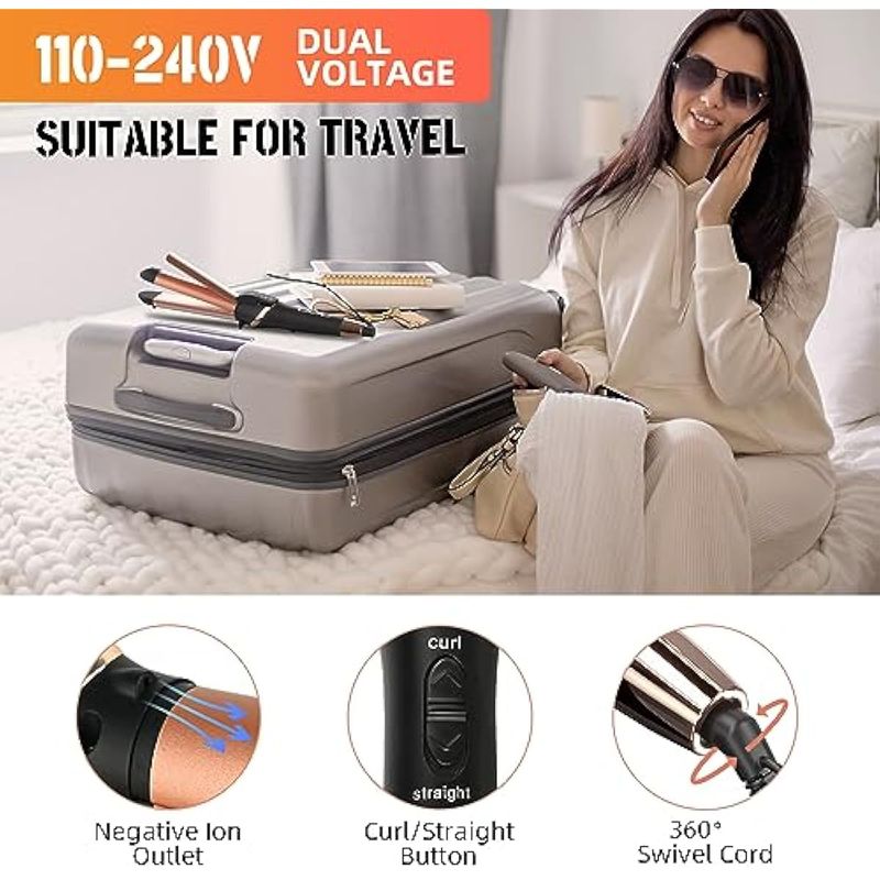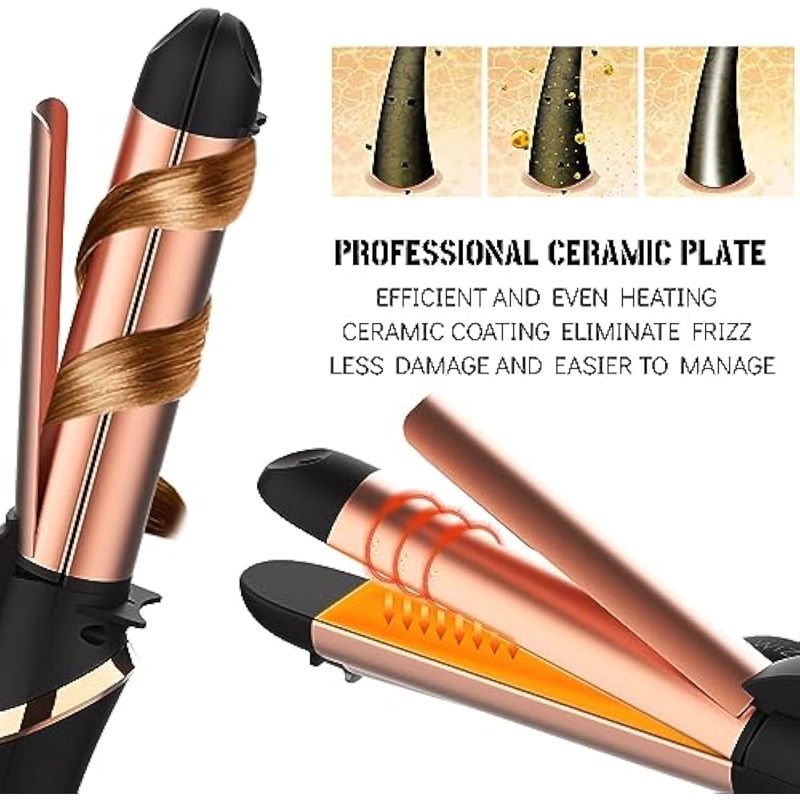 Wizchark - Plancha de pelo 2 en 1 y rizador de pelo de 1 1/4 pulgadas, rizador de pelo iónico de