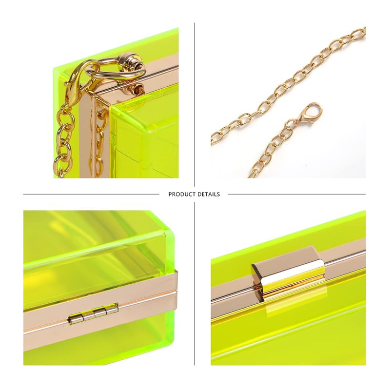 WJCD - BOLSO DE MANO DE ACRíLICO TRANSPARENTE PARA MUJER, BOLSO DE HOMBRO CON CORREA DE CADENA DE DORADA DESMONTABLE