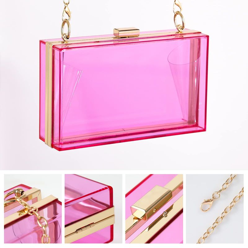EQUIPAJEMOCHILASWJCD - Bolso de mano de acrílico transparente para mujer, bolso de hombro con correa de cadena de