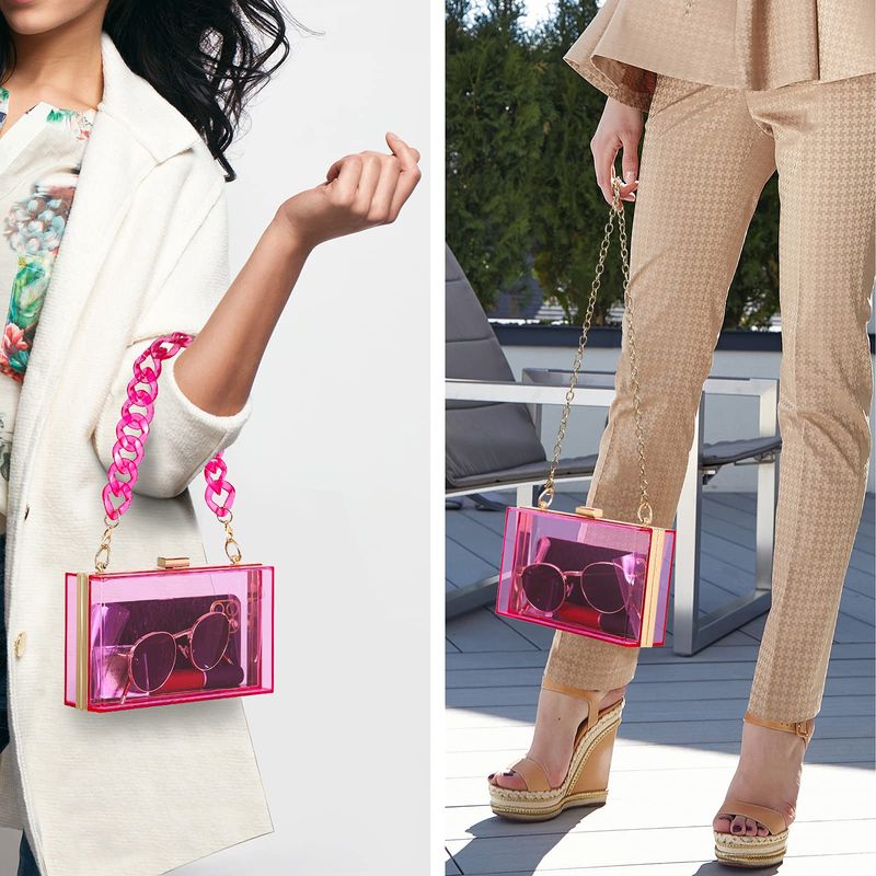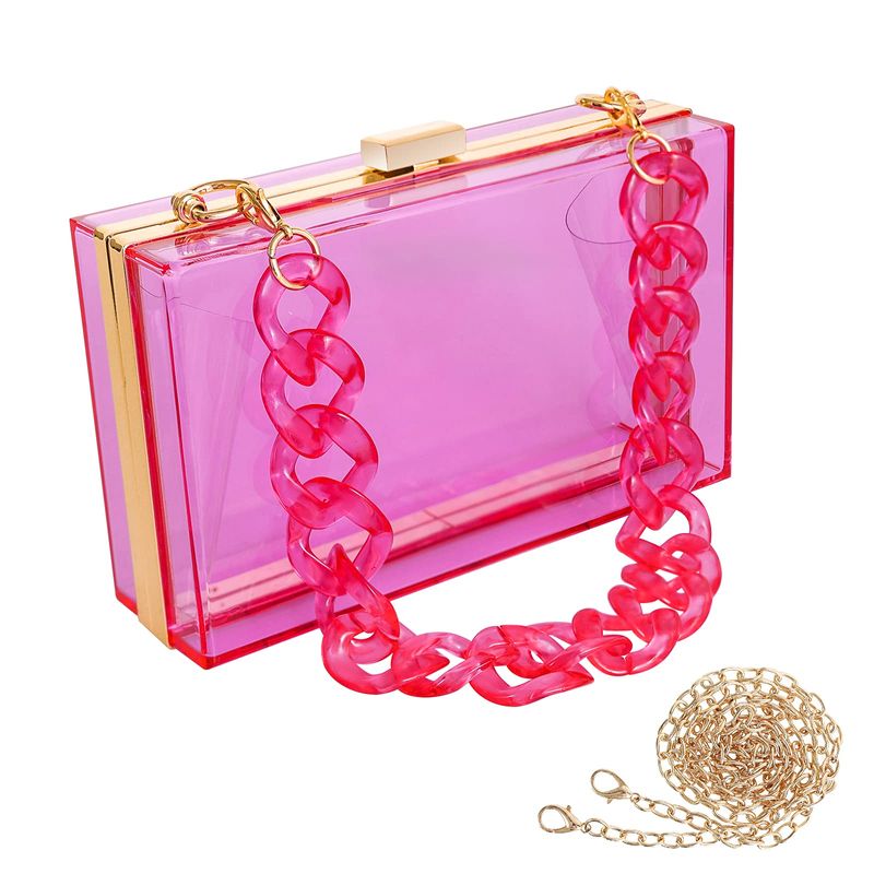 WJCD - Bolso de mano de acrílico transparente para mujer, bolso de hombro con correa de cadena de