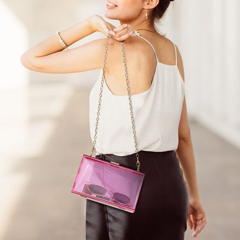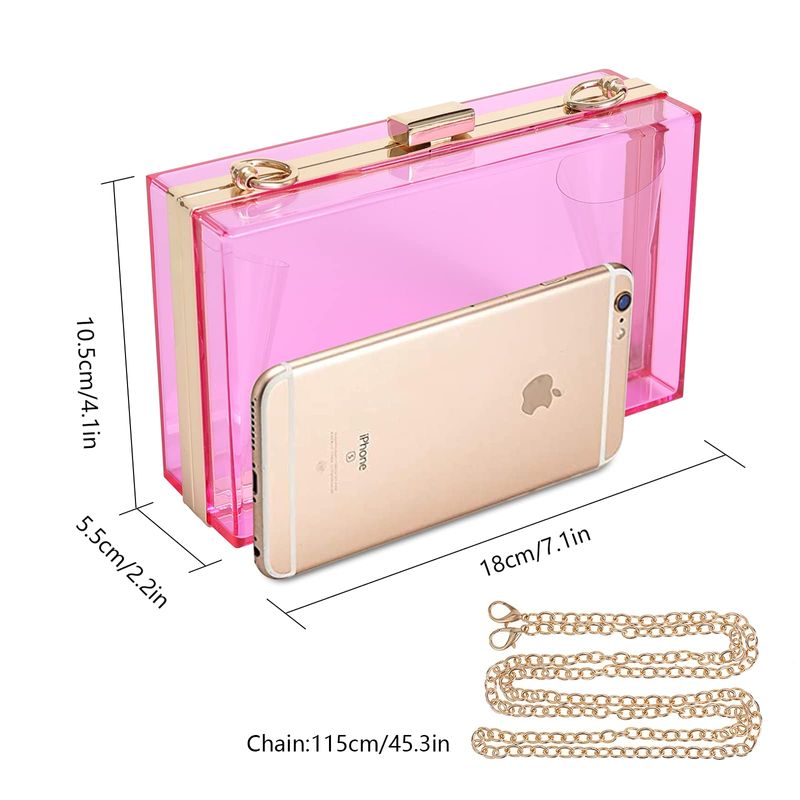 WJCD - Bolso de mano de acrílico transparente para mujer, bolso de hombro con correa de cadena de