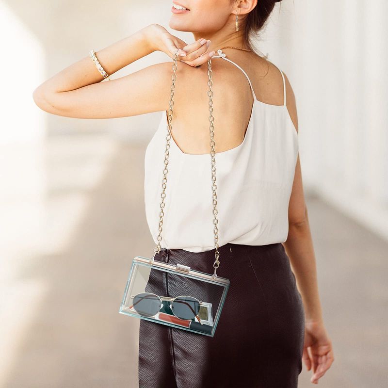 EQUIPAJEMOCHILASWJCD - Bolso de mano de acrílico transparente para mujer, bolso de hombro con correa de cadena de