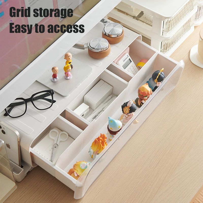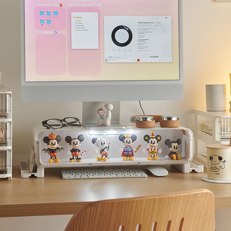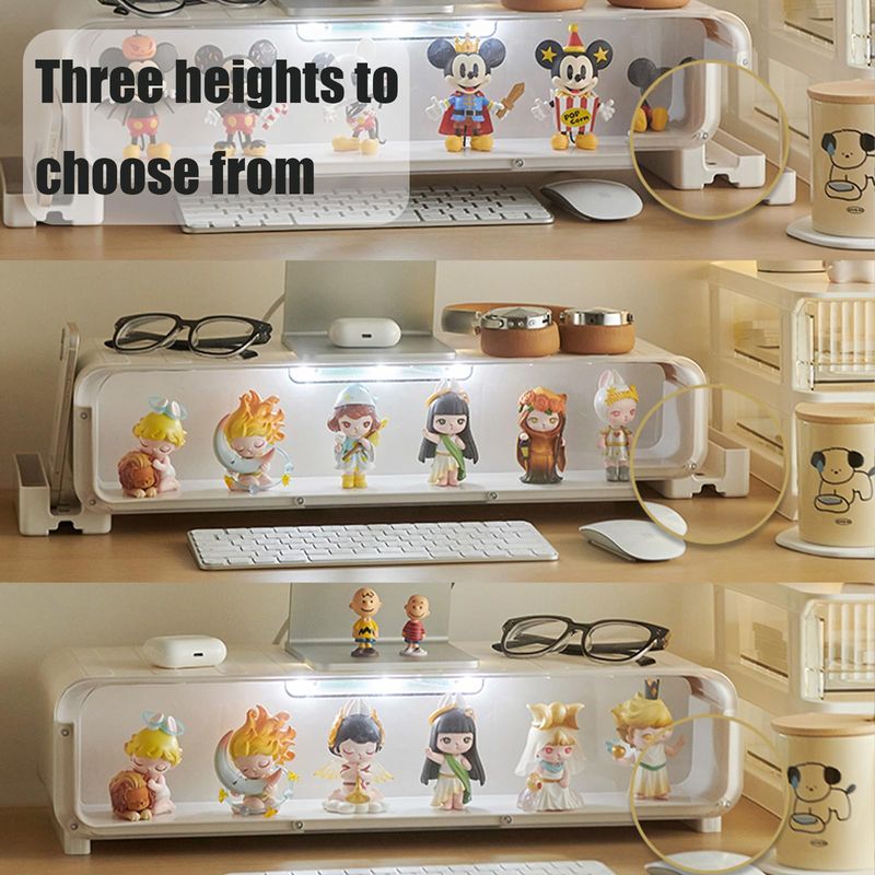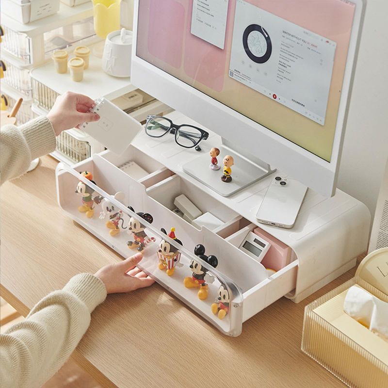 WMM Soporte elevador para monitor, soporte para monitor de computadora con cajón y minifiguras de