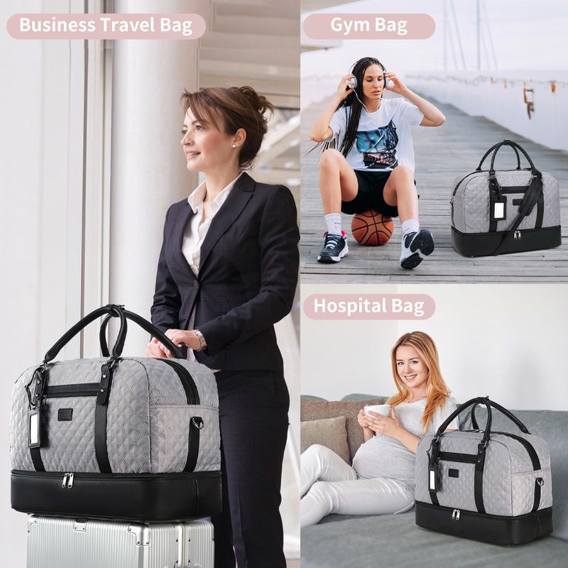 ?Inner Large Sealed Waterproof Pocket Function& Multi Pockets Safety Design?The weekender bag provides versatility and comfort. with a total of 6 pockets and 1 shoe compartment, never worry about losing your important items ever again.One inner large sealed waterproof pocket, helps to keep the wet clothes, towels store separately with dry stuffs,protect your toiletries clean and tidy.