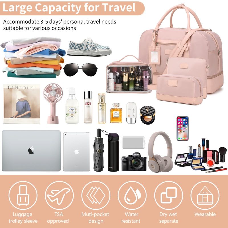 EQUIPAJEMOCHILASWogarl 4PCS Weekender Bags for Women Large Overnight Bag Weekend Travel Duffel Bag Carry on Shoulder
