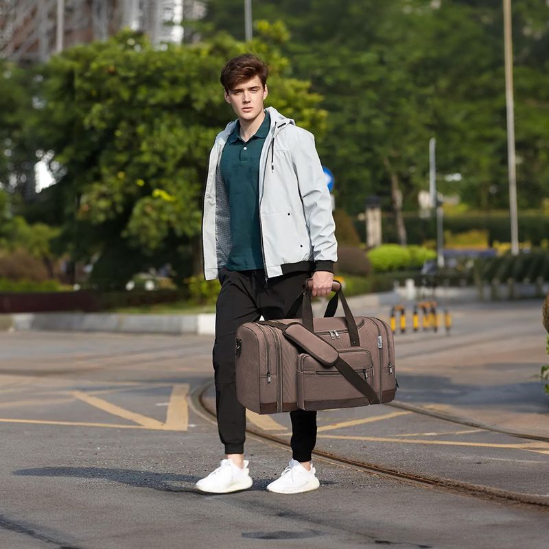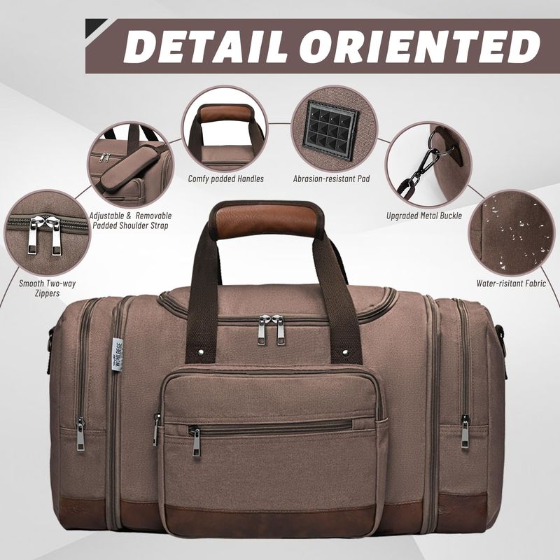 WOHLBEGE BOLSA DE VIAJE DE GRAN CAPACIDAD PARA HOMBRE, BOLSA CRUZADA DE FIN DE SEMANA, BOLSA DE LONA PARA HOMBRE, NEGRO