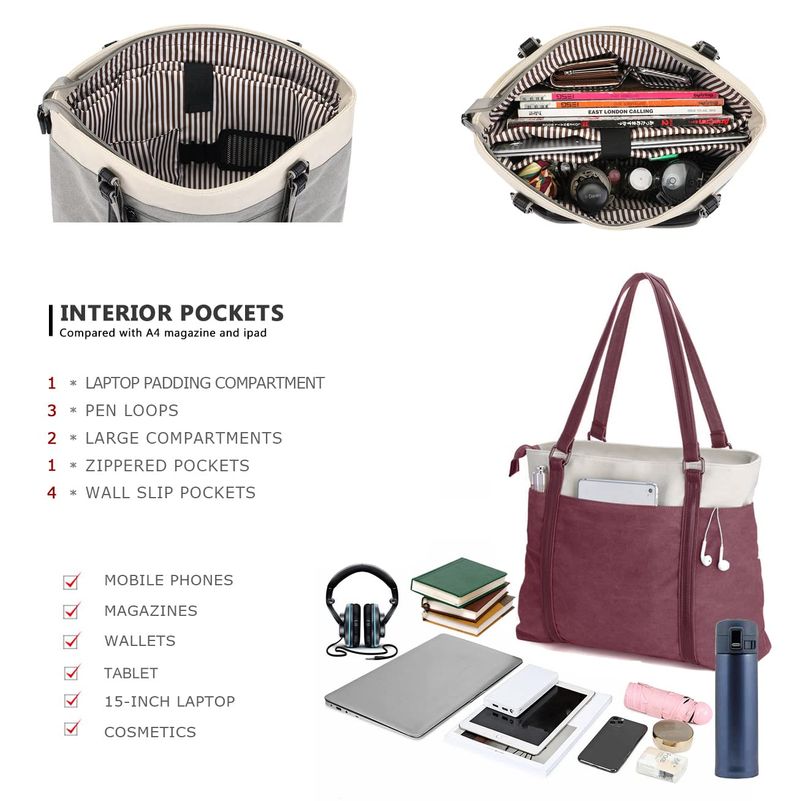 Women's Work Bag with Laptop Compartment Zipper Pockets Teacher Totes Purse