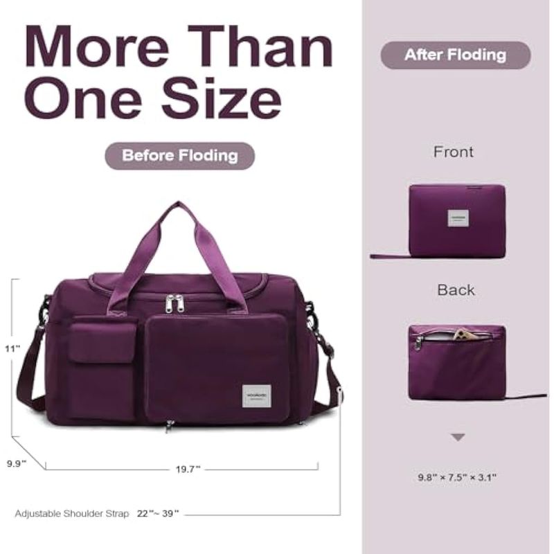 ?Múltiples tamaños y fácil de transportar: la bolsa de viaje WOOMADA de gran capacidad se puede plegar de acuerdo a tus necesidades. Tamaño plegado portátil: 9.8 × 7.5 × 3.1 pulgadas es una buena idea ponerlo en tu bolsa de equipaje como una bolsa adicional; tamaño de gran capacidad de viaje: 19.7 × 9.9 × 11 pulgadas equipado con correa de hombro ajustable de 22-39. Puede contener fácilmente tu ropa, zapatos, laptop, libros, artículos de aseo personal o cosméticos.