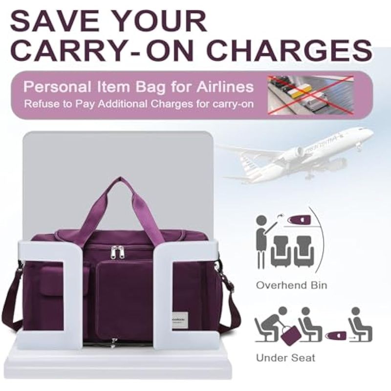 ?Compartimento separado para zapatos y bolsa extra para zapatos: el lado de las bolsas de fin de semana para mujer tiene un compartimento separado para zapatos 14.9 × 7.8 × 7.1 y una bolsa de zapatos adicional. Puede acomodar fácilmente zapatos de varios tamaños, incluyendo tenis, sandalias y tacones. Incluso puedes poner ropa sucia, todo según tu preferencia.