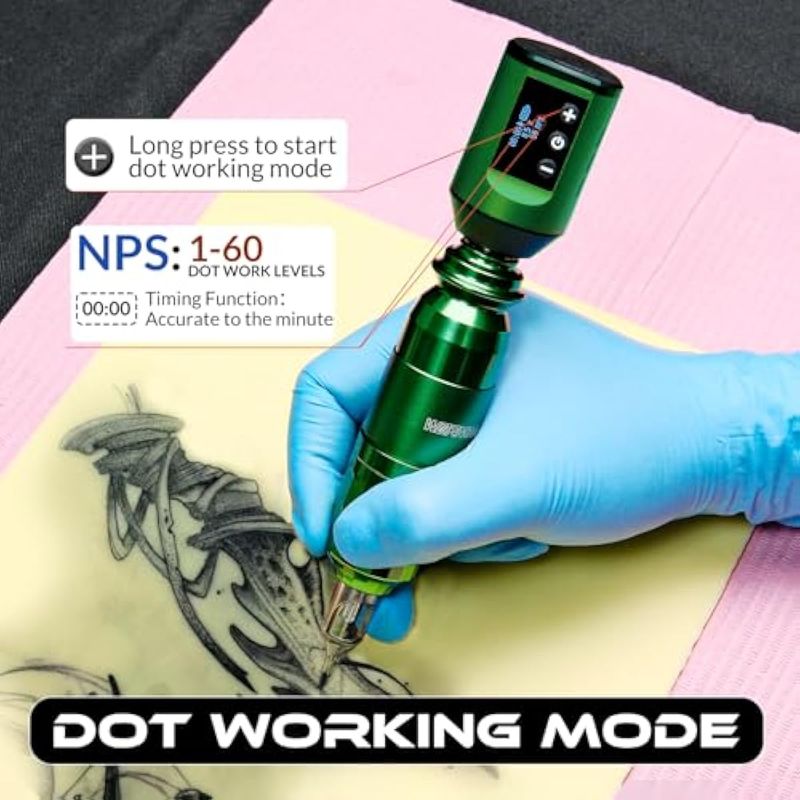 Wormhole Tattoo Kit de pistola de tatuaje de trabajo de punto inalámbrico de 1500 mAh, kit de