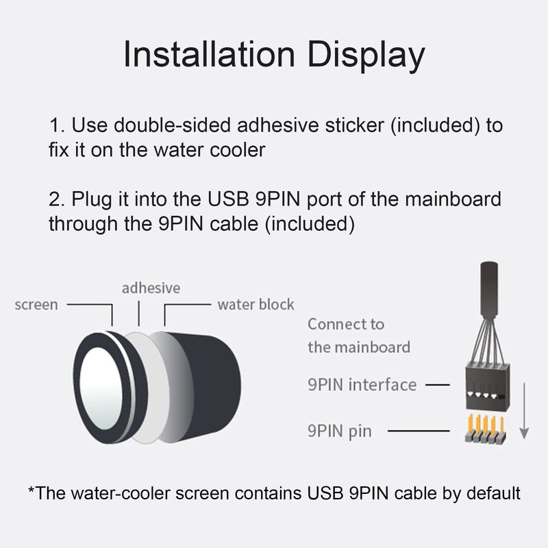 WOWNOVA Monitor de temperatura de computadora AIO de 2.1 pulgadas, enfriador de CPU, pantalla LCD,