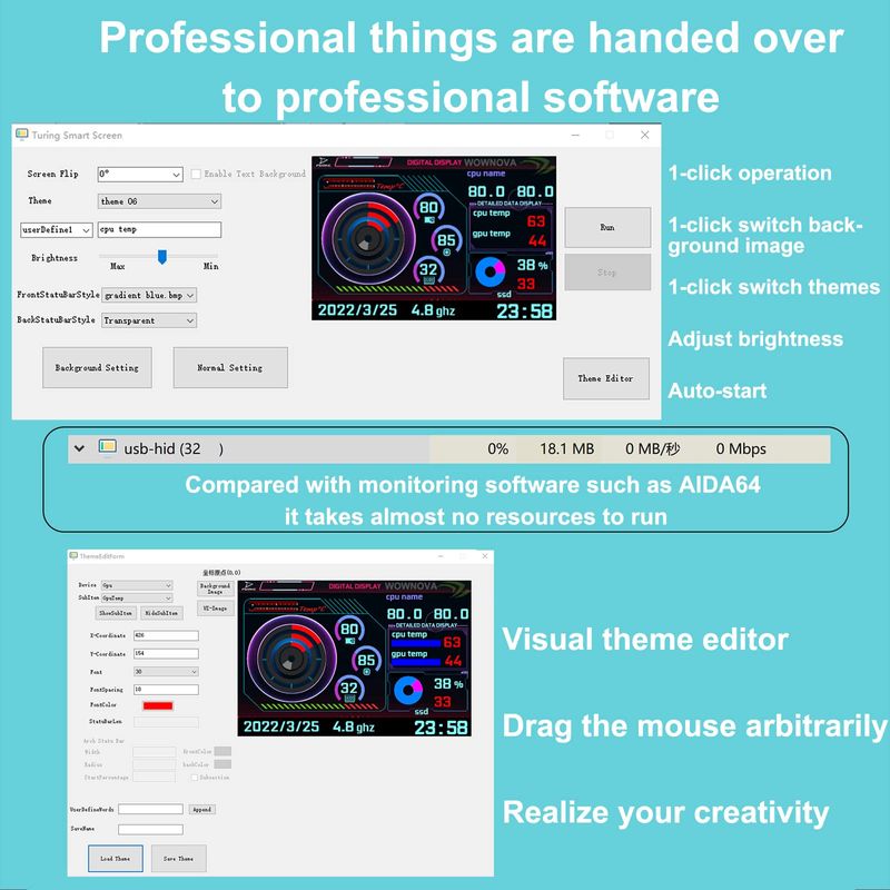 WOWNOVA Monitor de temperatura de computadora versión en inglés, pantalla ARGB para PC, Mini