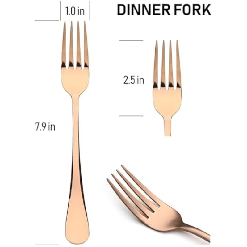 Alta calidad: los tenedores dorados están hechos con acero inoxidable de alta calidad con un acabado de espejo para proporcionarte un juego de tenedores de cena que es lo suficientemente duradero como para proporcionarte años de uso. Son resistentes al óxido, la corrosión y aptos para lavavajillas.