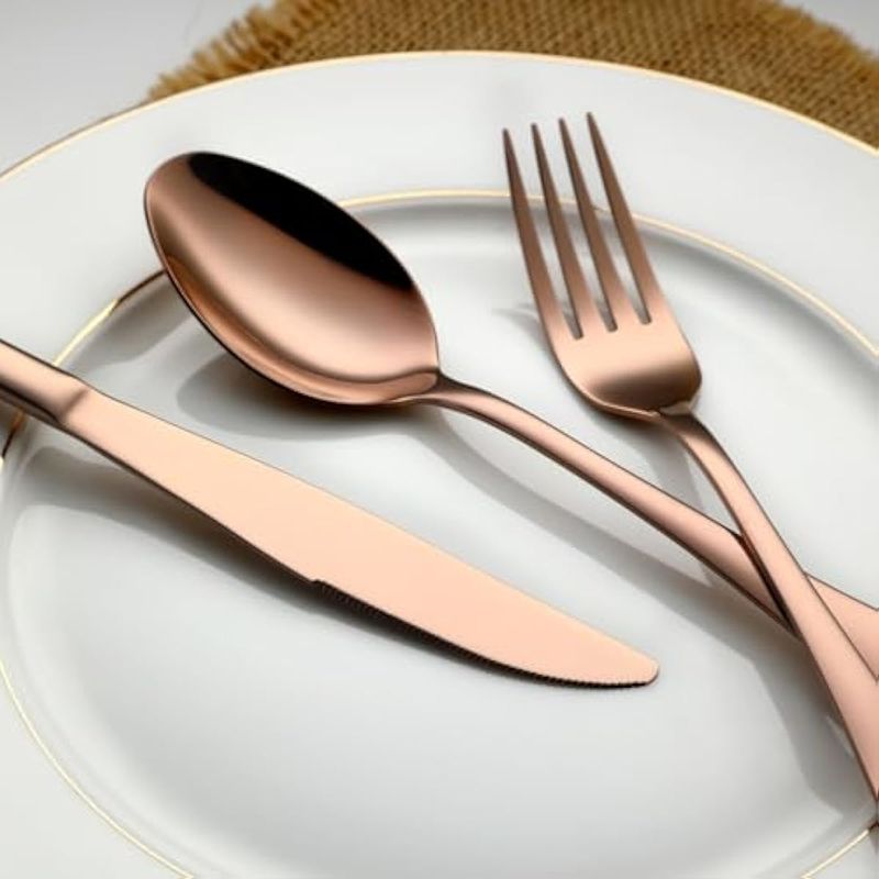 Cómodo y saludable: estos tenedores dorados están cuidadosamente pesados para ser cómodos de sostener sin importar lo que estés comiendo sin doblarse. Cada uno de nuestros juegos de cubiertos de acero inoxidable no es tóxico, no tiene sabor a metal, y está hecho para durar la prueba del tiempo para proporcionarte años de uso.