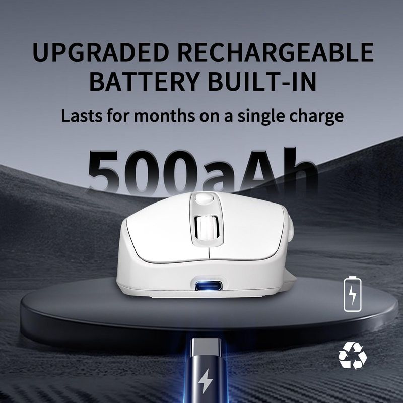 Rechargeable MouseAutomatic Sleep: built-in large-capacity 500 mAh rechargeable battery, equipped with type-c charging port, no need to replace the battery. The rechargeable mouse will automatically enter sleep mode after 5 minutes of inactivity to save power, better energy efficiency, and environmental protection.
