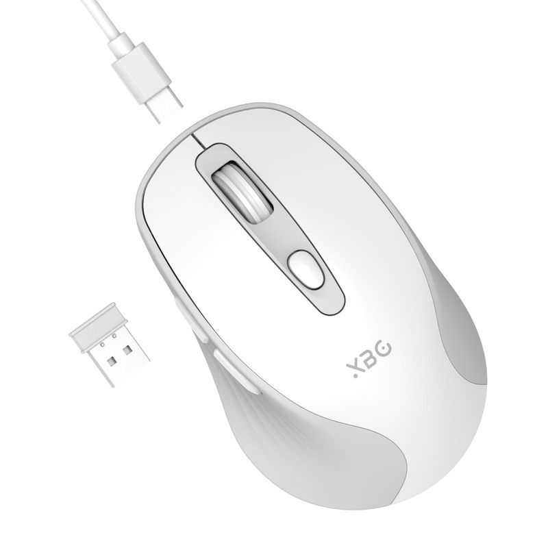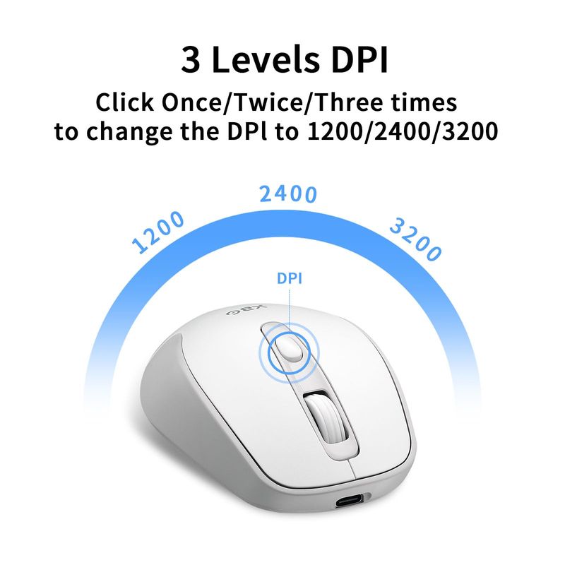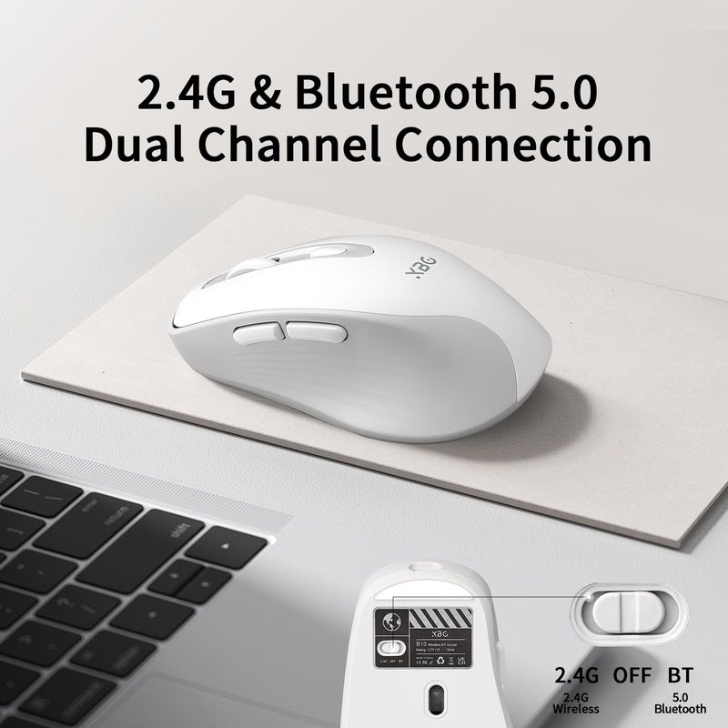XBG WIRELESS MOUSE, BLUETOOTH MOUSE 5.0+2.4G RECHARGEABLE SILENT WIRELESS MOUSE, 3 ADJUSTABLE DPI WITH ERGONOMIC 6 BUTTONS COMPATIBLE WITH COMPUTER/LAPTOP/MAC/IPAD, BLACK