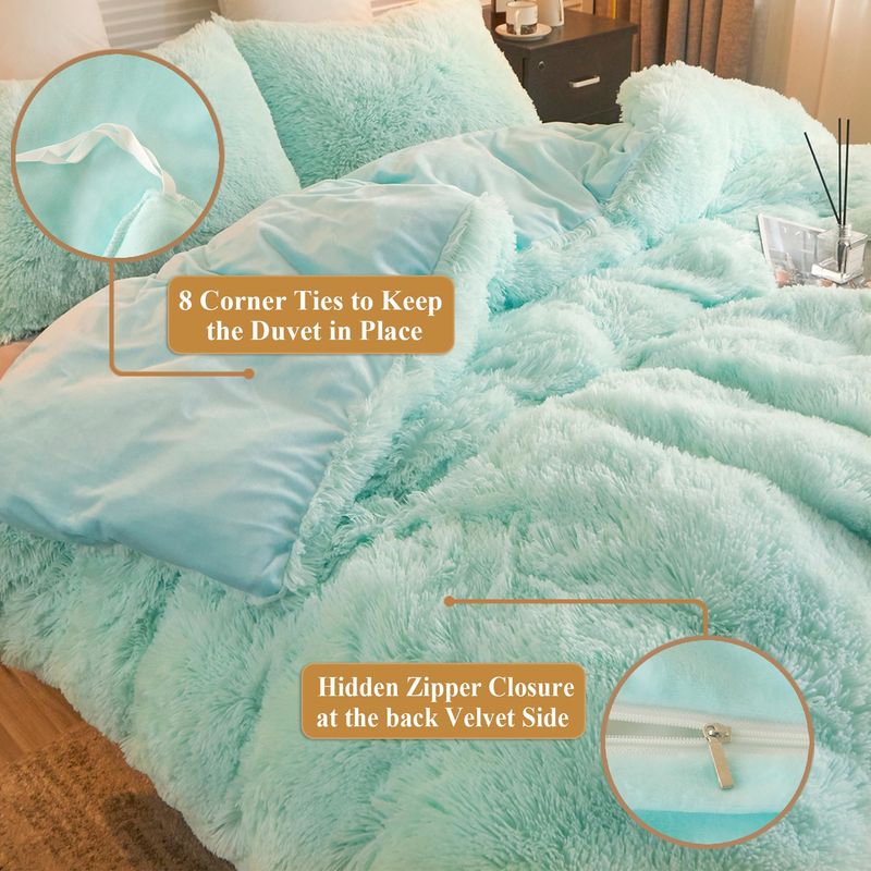 Instrucciones de lavado: dale la vuelta a esta funda de edredón peluda, lava a máquina o a mano con agua fría, seca suave y a baja temperatura. Sin calor. No usar blanqueador. No planchar. Consulta la etiqueta de cuidado.