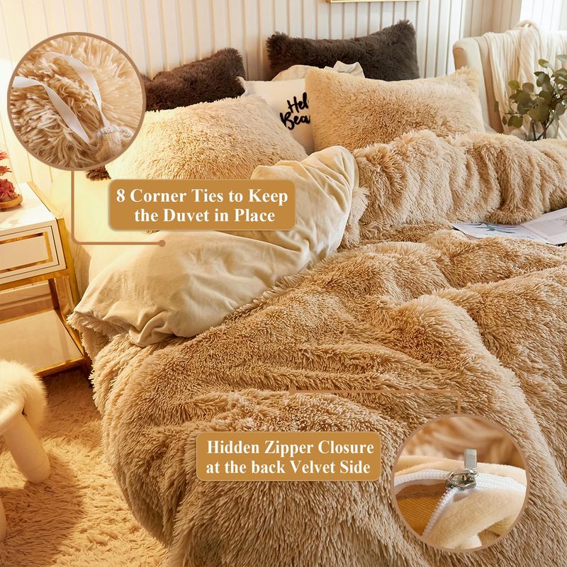 Instrucciones de lavado: dale la vuelta a esta funda de edredón peluda, lava a máquina o a mano con agua fría, seca suave y a baja temperatura. Sin calor. No usar blanqueador. No planchar. Consulta la etiqueta de cuidado.